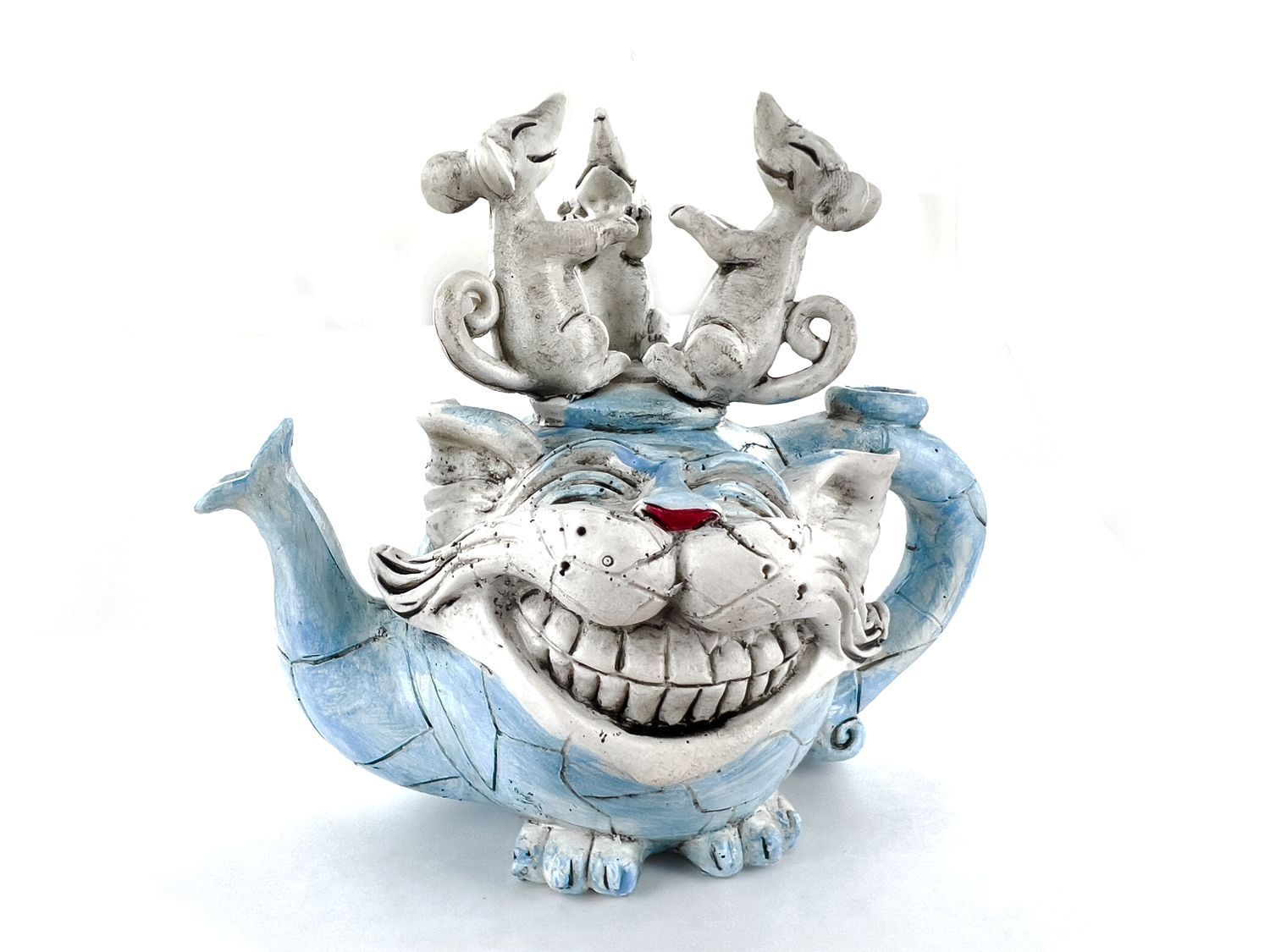 Представляем вам уникальную статуэтку в виде чайника-кота по мотивам сказки "Алиса в Стране Чудес". Она станет прекрасным дополнением к вашей коллекции или отличным подарком для поклонников литературного произведения Льюиса Кэрролла.