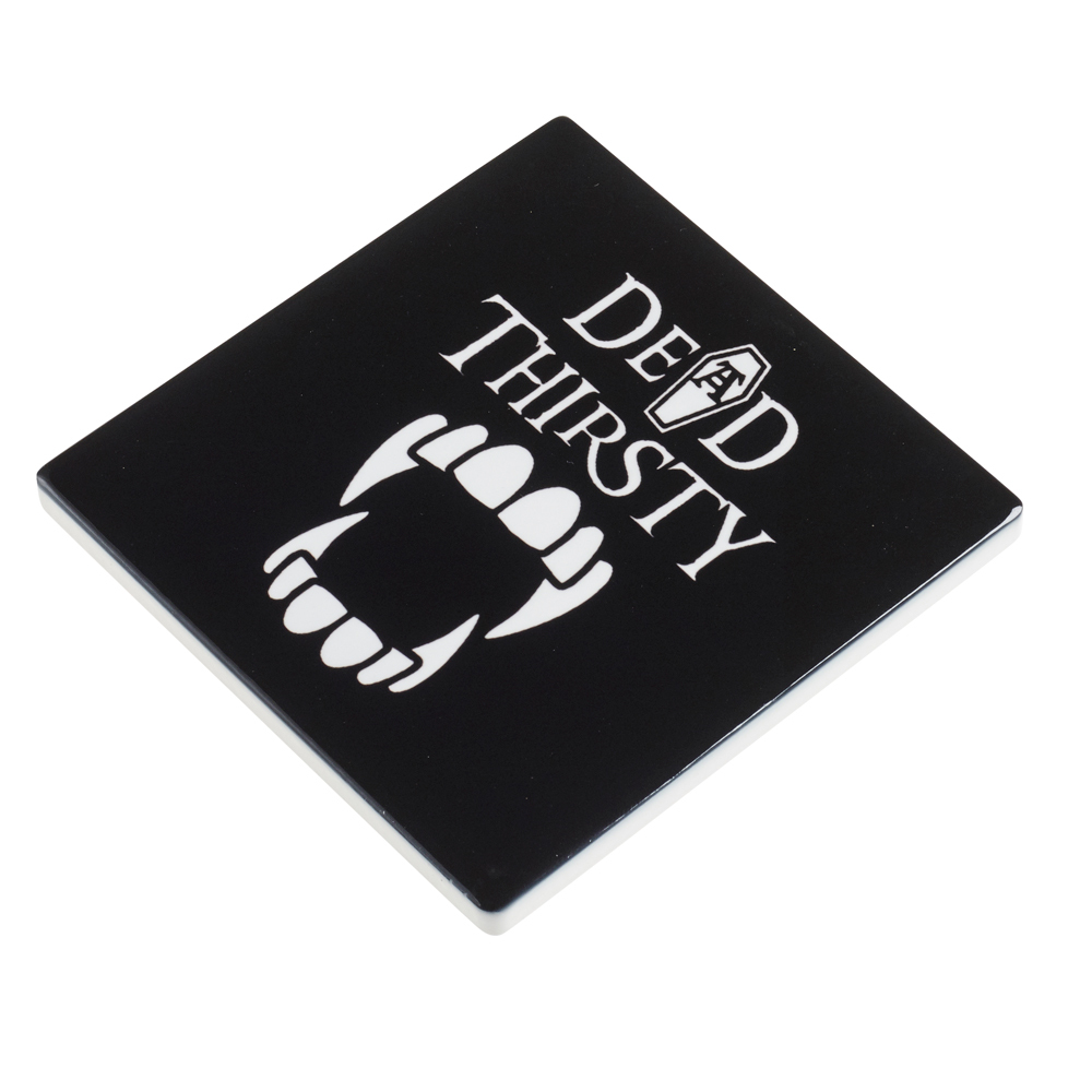 Мрачно-забавная подставка для чашки с вампирскими зубами и надписью «Смертельная жажда». Также доступна новая кружка с тем же дизайном: ALMUG10.