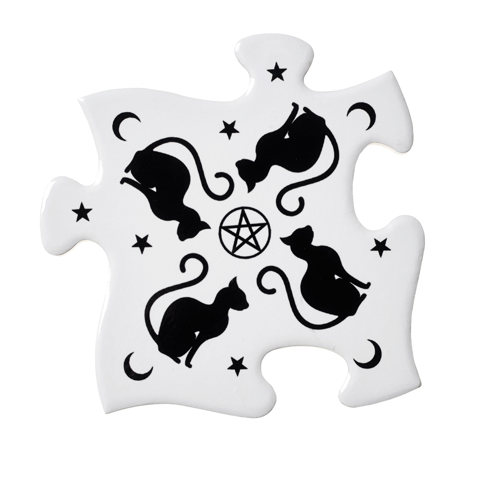 Черные кошки, пентаграммы, звезды и полумесяцы украшают этот потрясающий набор подставок из 4 предметов. Эти подставки можно использовать по отдельности или в качестве термостойкой подставки для большой посуды, если соединить их вместе. Добавьте немного волшебства в свой дом с помощью этого прекрасного набора, разработанного компанией Alchemy. Этот уникальный набор-паззл разработан компанией Alchemy и является частью коллекции высококачественной керамической посуды для дома. Вес и размеры (приблизительно): 20,2х20,2х0,8 см. Вес: 363 г. Керамические подставки Jigsaw / подставки с нескользящим пробковым покрытием, украшенные оригинальными произведениями искусства Alchemy. Термостойкие и устойчивые к царапинам.