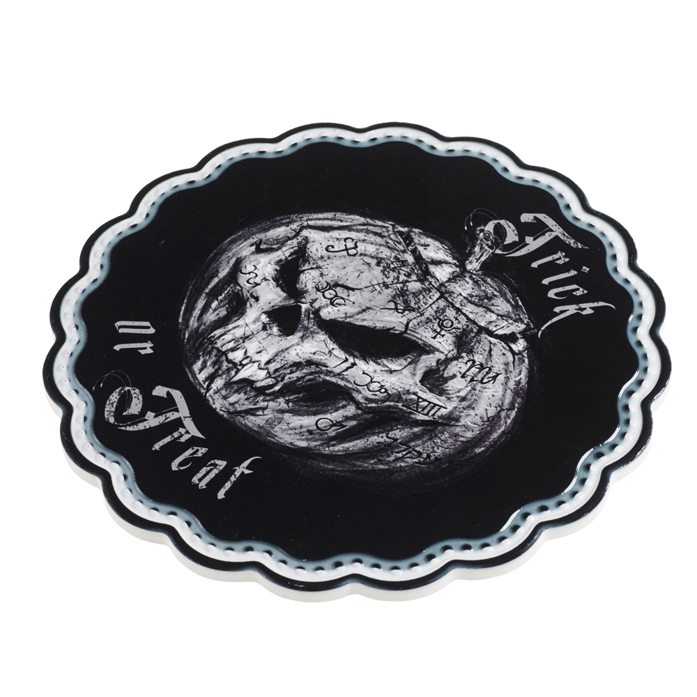 Эта подставка/сервировочная тарелка «Сладость или гадость» предназначен не только для Хэллоуина. На этом мрачновато-красивом изделии можно выставлять угощения круглый год. Спрячьте рисунок под любимым тортом, и после того, как его съедят, это неожиданное произведение искусства в виде тыквенного черепа станет предметом обсуждения среди ваших гостей! Этот уникальный поднос/сервировочная тарелка разработан компанией Alchemy и является частью коллекции высококачественной керамической домашней утвари. Вес и размеры (приблизительно): 20х20х0,8 см. Вес: 377 г. Керамическая подставка/сервировочная тарелка с нескользящей пробковой поверхностью, украшенная оригинальной иллюстрацией Alchemy. Термостойкая и устойчивая к царапинам.