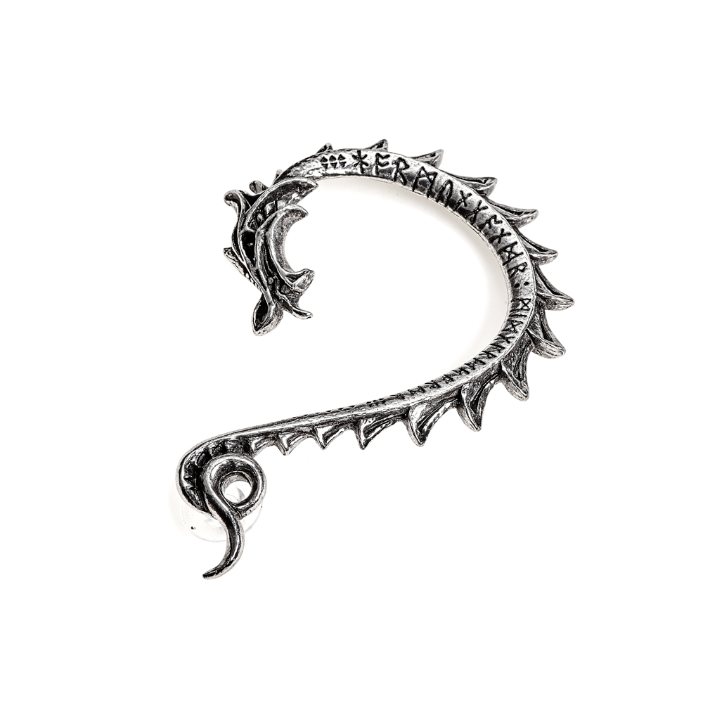 Скандинавская легенда о Йормунганде, "Мидгарде" или "Мировом Змее" - величайшем Уроборосе. Популярный дизайн Alchemy 'Jormungand' в виде серьги! Подходит для левого уха. Вес и размеры: H: 73 мм (2,87 дюйма) W: 52 мм (2,05 дюйма) D: 15 мм (0,59 дюйма) Вес: 19 г (0,67 унции).