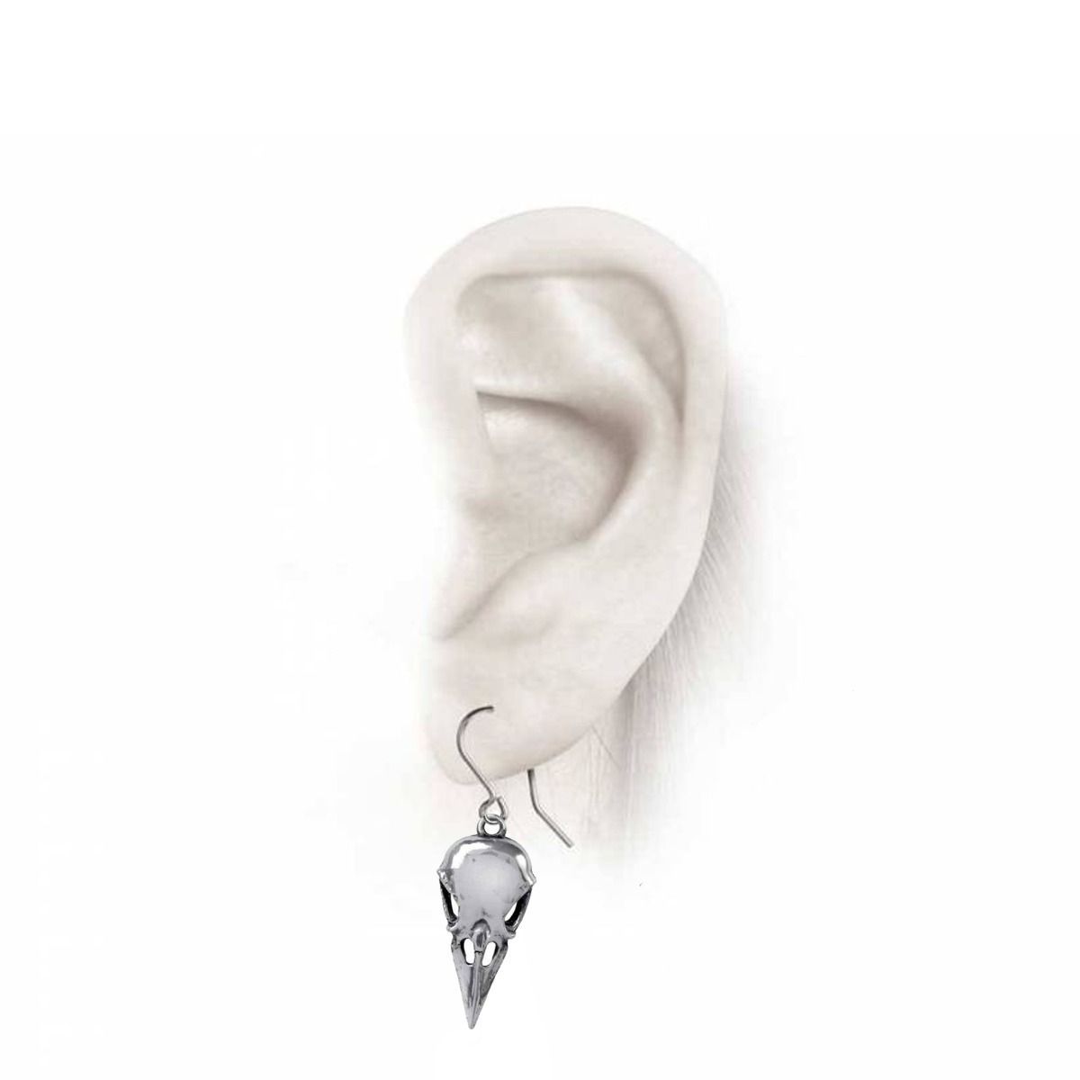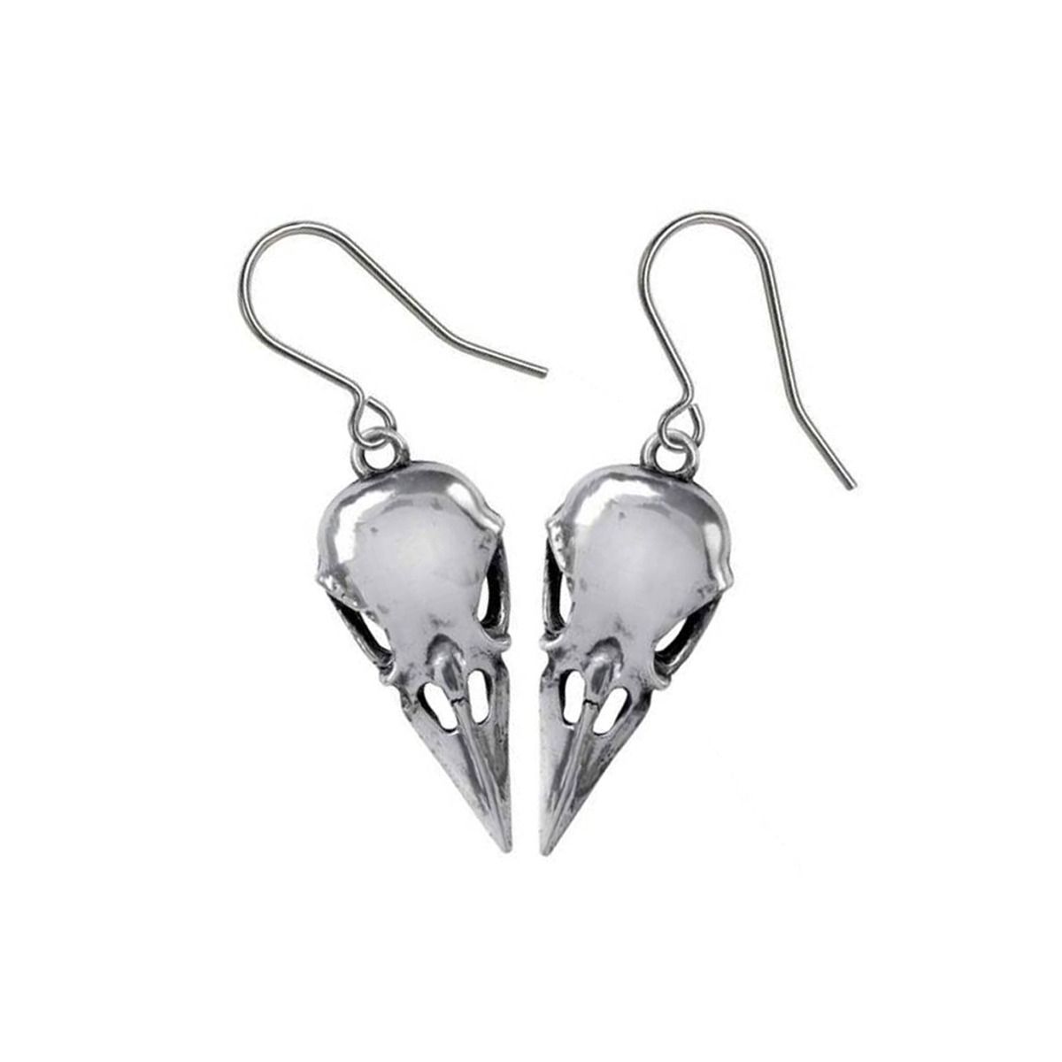 Серьги в форме черепа легендарной древней птицы, клюв которой указывает путь в бессмертную загробную жизнь, хотя все должны сначала пройти через портал смерти. Потрясающие серьги. Череп ворона из яркого полированного пьютера. Крепление и упаковка: пара серег, упакованных в фирменный пакетик Alchemy, включая гарантию Alchemy и инструкции по уходу. Материалы и происхождение: разработаны и изготовлены вручную в Англии из тонкого английского пьютера с замочком из хирургической стали.