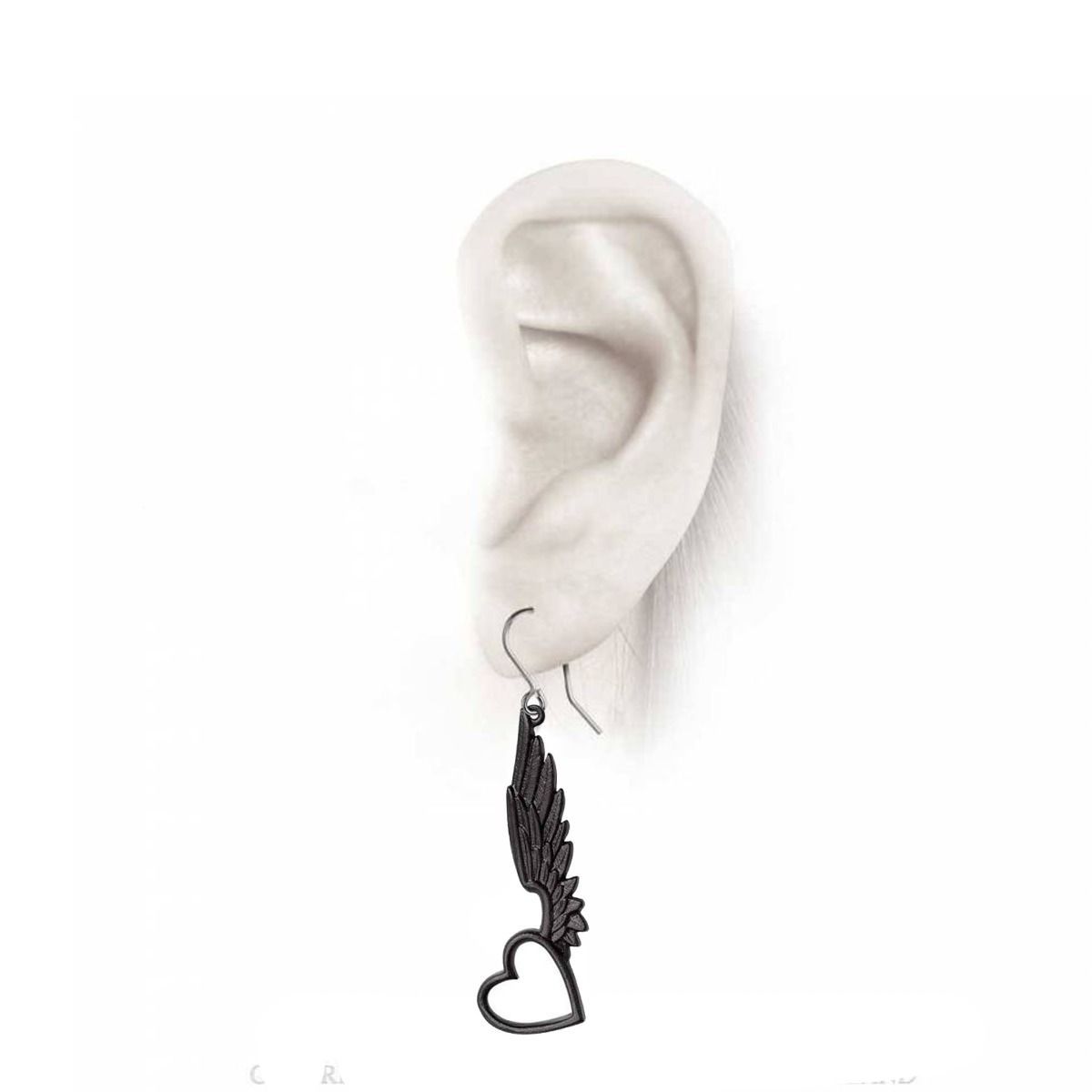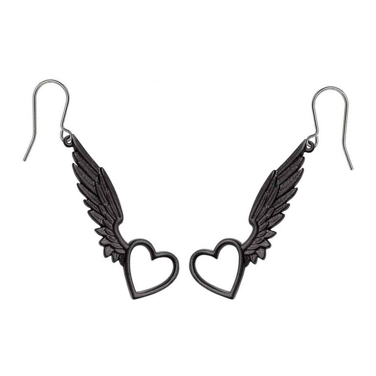 Готическая любовь; добродетель и порок, экстаз и страдания, ангел встречает демона, и сердца сливаются. Как же сильно бросаются в глаза эти серьги! Две серьги из черного пьютера с симметрично расположенными готическими крыльями и сердцами. Крепление и упаковка: пара серег, упакованных в фирменный пакетик Alchemy, включая гарантию Alchemy и инструкции по уходу. Материалы и происхождение: разработаны и изготовлены вручную в Англии из тонкого английского пьютера с замочком из хирургической стали.