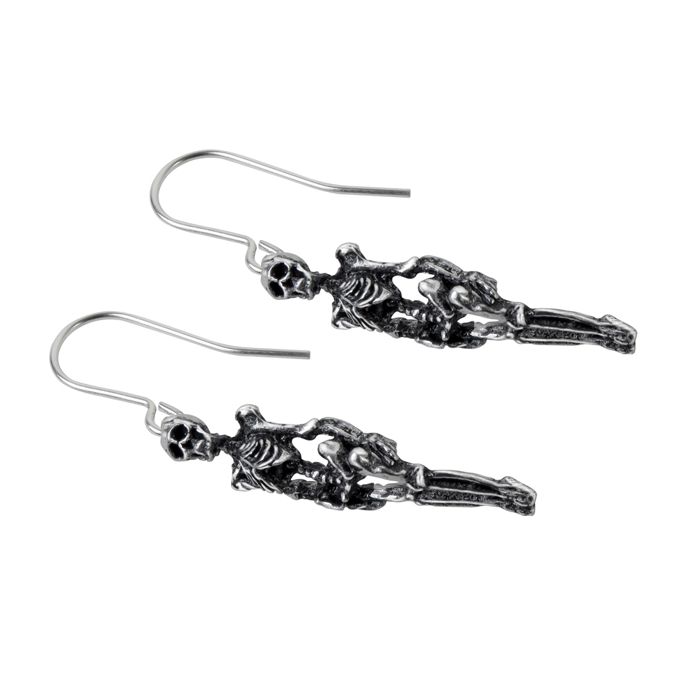 Смерть - это великий уравнитель - все сводится к этому. Последние останки как хозяина, так и раба. Вечный символ, чтобы нивелировать любой темный взгляд. Пара миниатюрных скелетов из английского пьютера, серьги на петлях из хирургической стали серьгах.