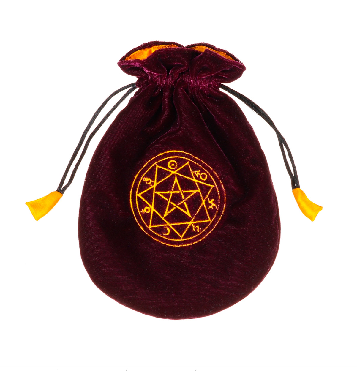 Мешочек для карт, изготовленый из качественной бархатной ткани и имеющий внутреннюю подкладку, изготовлен в Англии дизайнерами бренда Eastgate. Наши прекрасно выполненные мешочки для Таро украшены вышивкой с магическими символами и подкладкой дополнительных цветов. Каждый мешочек закрывается на шнурок, а подкладка отделана вручную. Эти оригинальные мешочки достойны даже самого взыскательного владельца Таро.