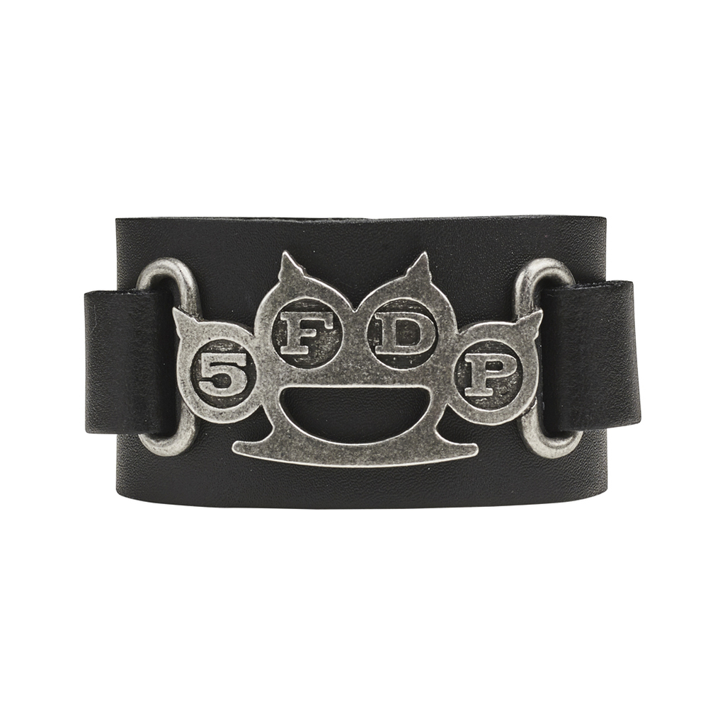 Ремешок из черной кожи шириной 1 ½ дюйма (38 мм) с литой под старину соединительной пластиной из английского пьютера Five Finger Death Punch Knuckle Duster