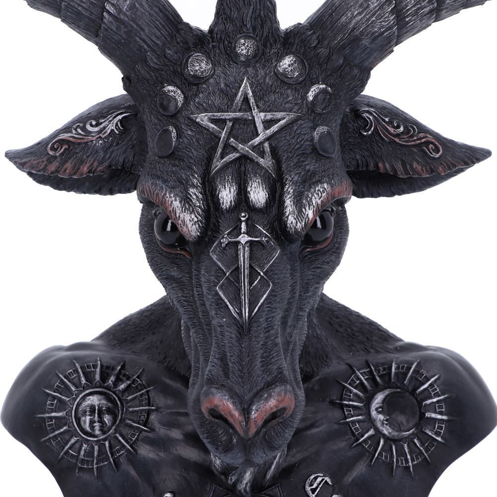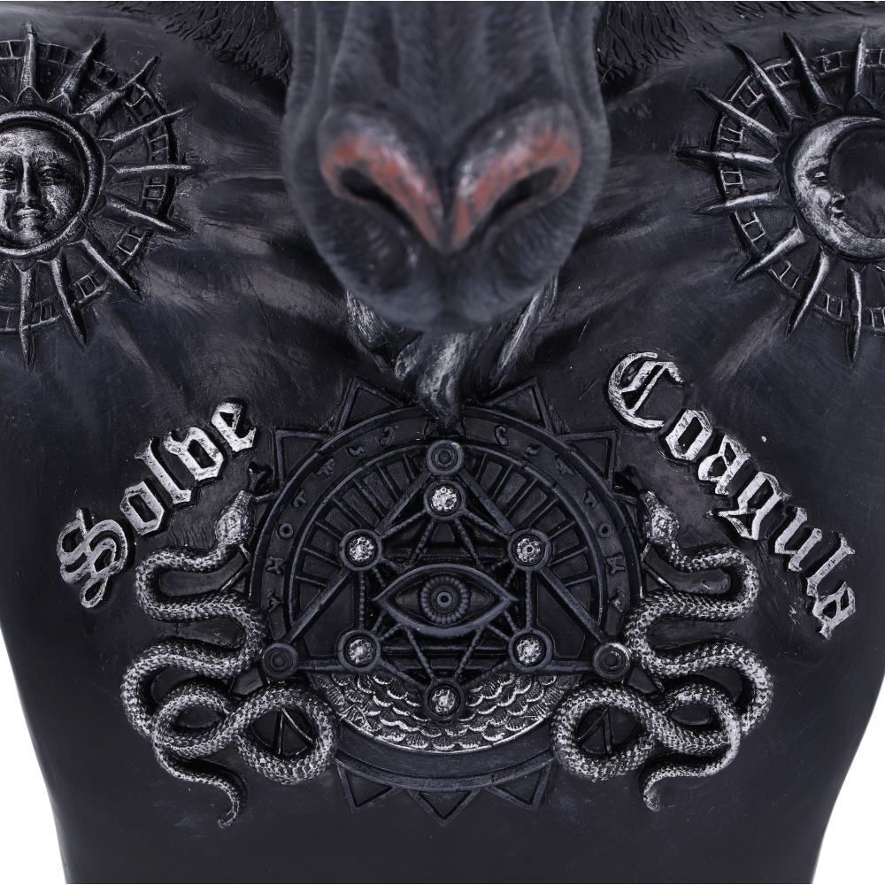 Эксклюзив от Nemesis Now: Символ оккультизма, Бафомет - крылатый козьеголовый гермафродит с факелом между рогами и пентаграммой на лбу. На его груди латинские слова SOLVE (раздельные) и COAGULA (соединительные), на груди - две змеи.