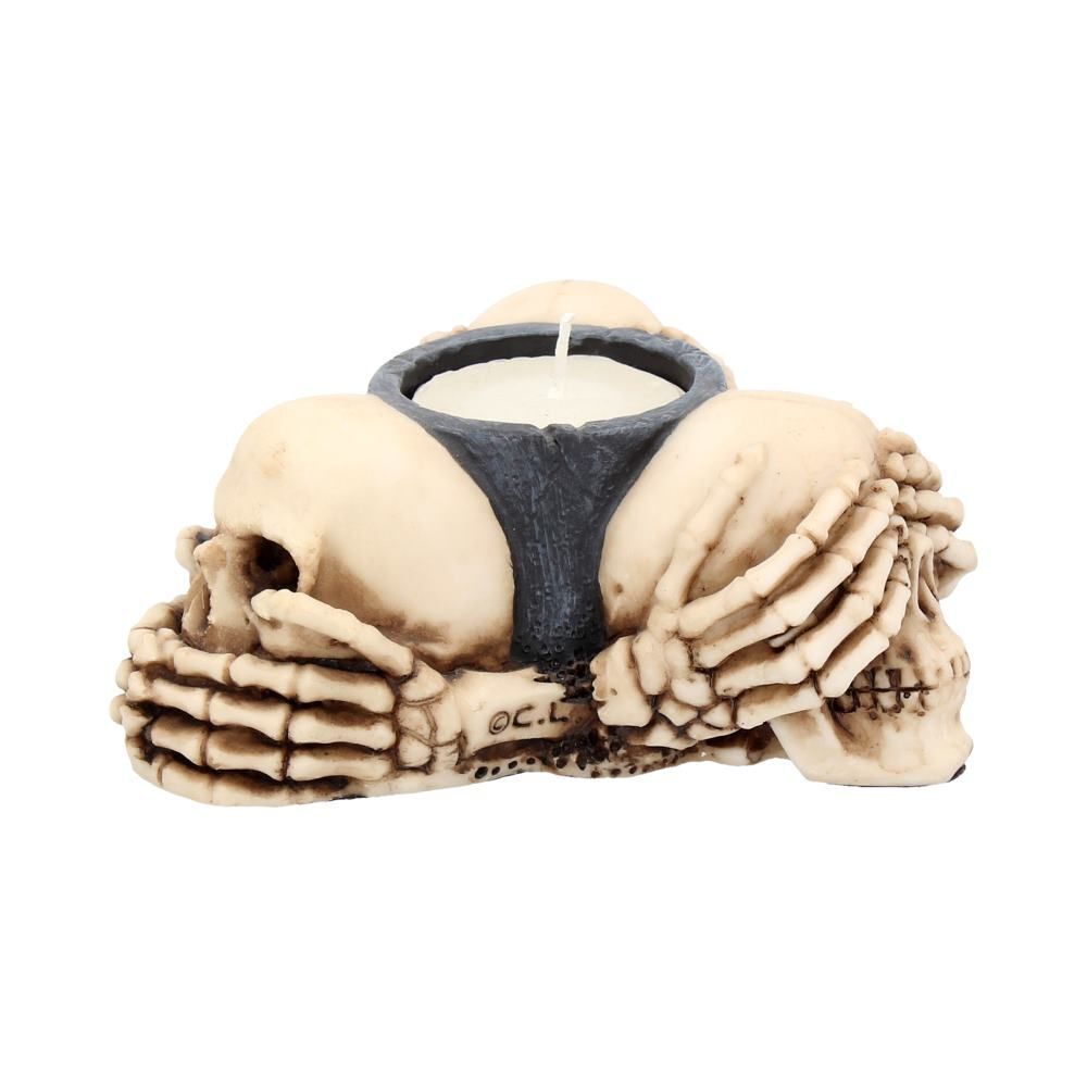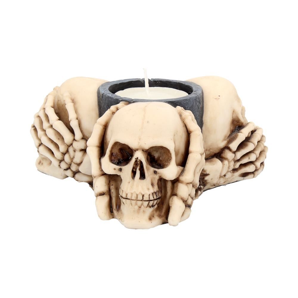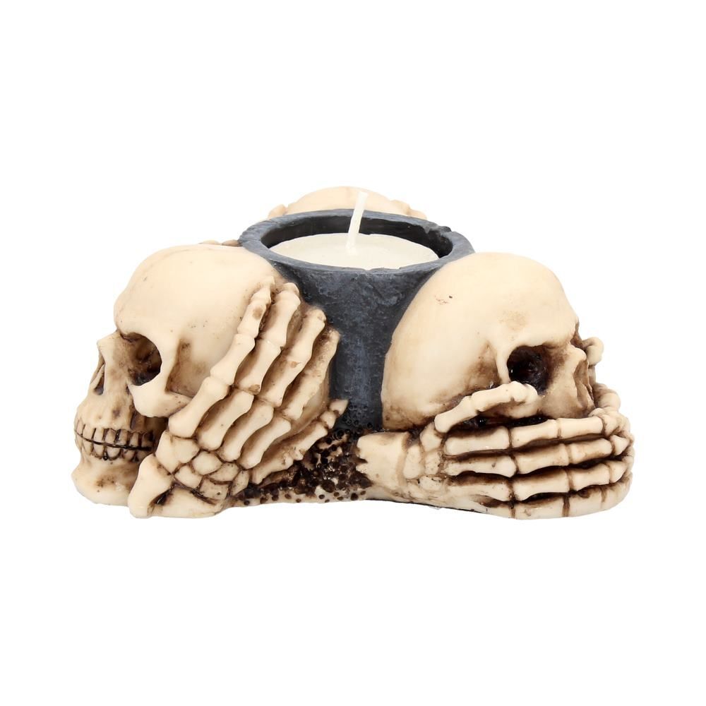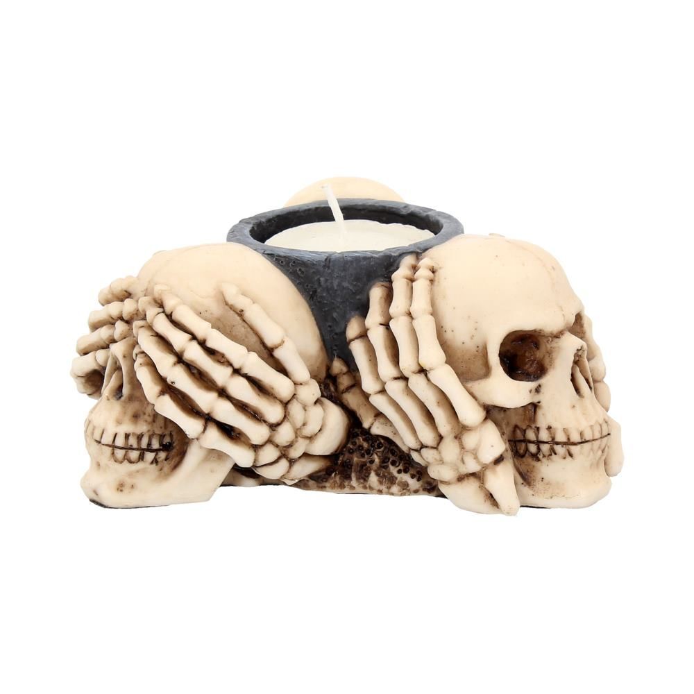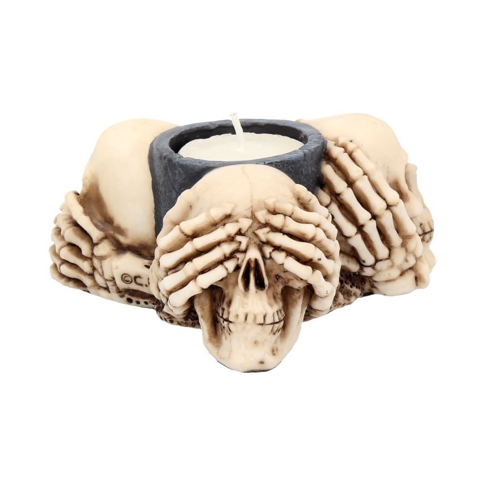 Эта пара подсвечников, увитая вьющимся плющом, идеально подходит для придания магического оттенка любому обеденному столу или гостиной.. Они воплощают древнюю конфуцианскую мудрость Не видеть зла, не слышать зла, не говорить зла: один закрывает свои пустые глазницы, другой - ушные отверстия, третий - ухмыляющийся рот. В центре каменного образования можно поставить чайную свечу, чтобы осветить свой путь мудростью. Отлитый из высококачественной смолы и с любовью расписанный вручную, этот готический предмет станет идеальным подарком для тех, кто ищет немного божественного предвидения.
