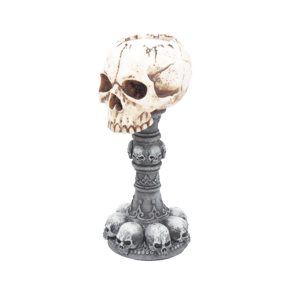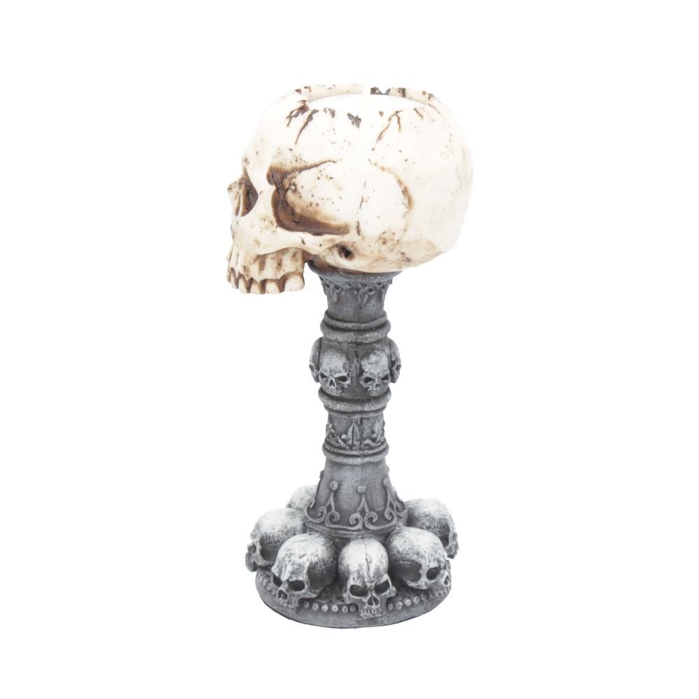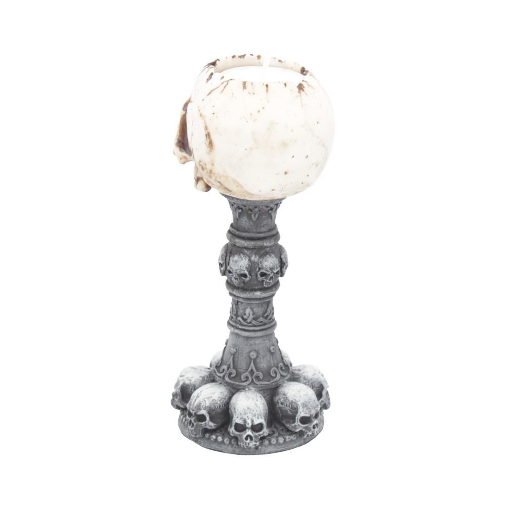 Этот подсвечник-факел выполнен в виде черепа покоящегося на постаменте-ножке украшенной другими меньшими черепами. Вмещает в себя одну чайную свечу. Подсвечник из макабрической коллекции бренда Nemesis Now. Зажги свечу в честь Богов Смерти в этом прекрасном готическом подсвечнике. Изделие доступно исключительно в альтернативной коллекции подарков Nemesis Now. Древний череп находится на вершине украшенной узорами ножки. В черепе отсутствует верхняя часть, и достаточно места для чайной свечи. Ножка подсвечника украшена замысловатыми барочными узорами, а также небольшими черепами, придающими жутковатый вид. Отлитый из тончайшей смолы и расписанный вручную подсвечник прекрасно дополнит интерьер готического дома.