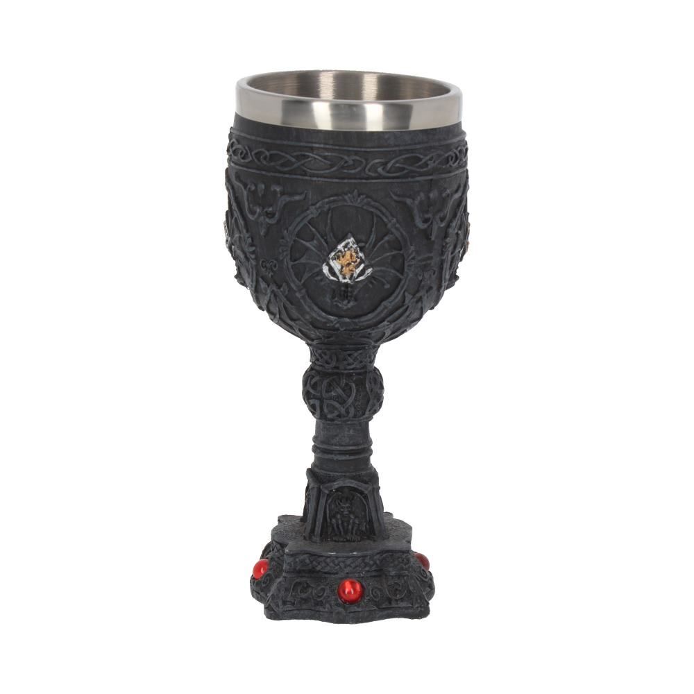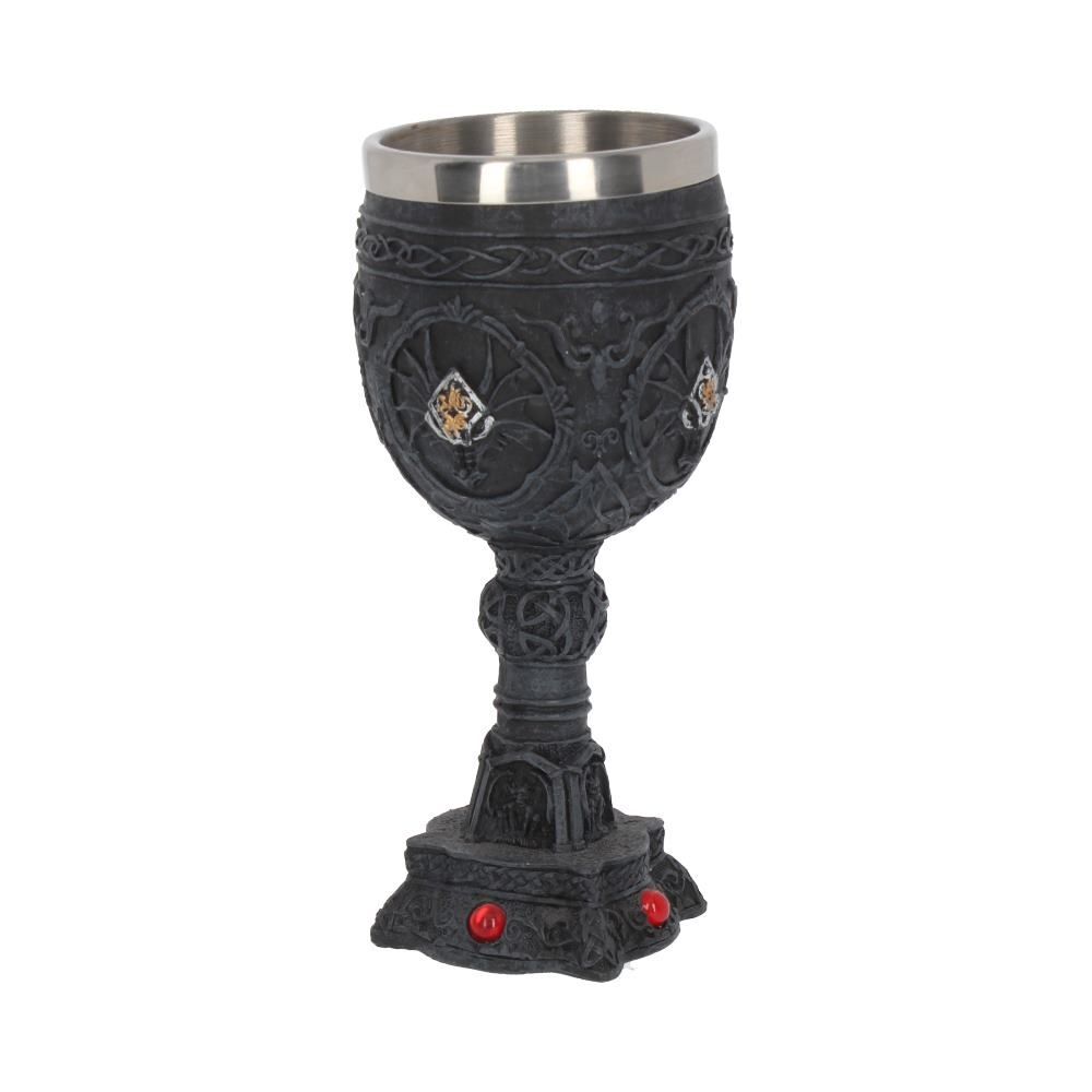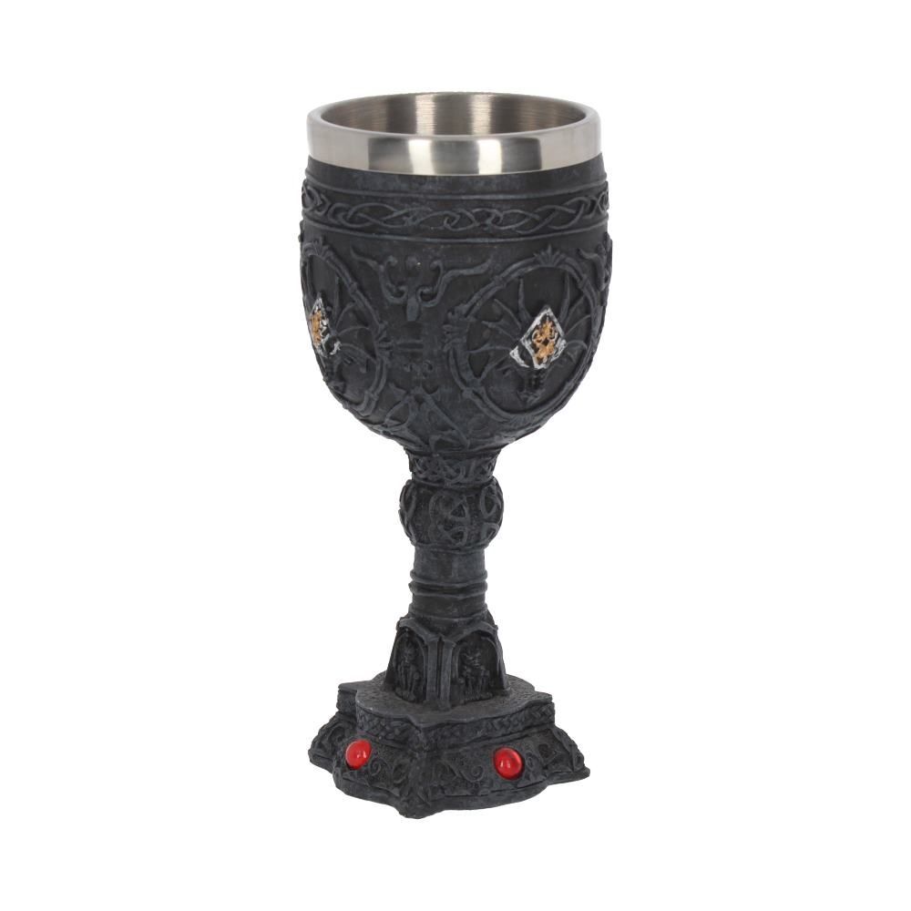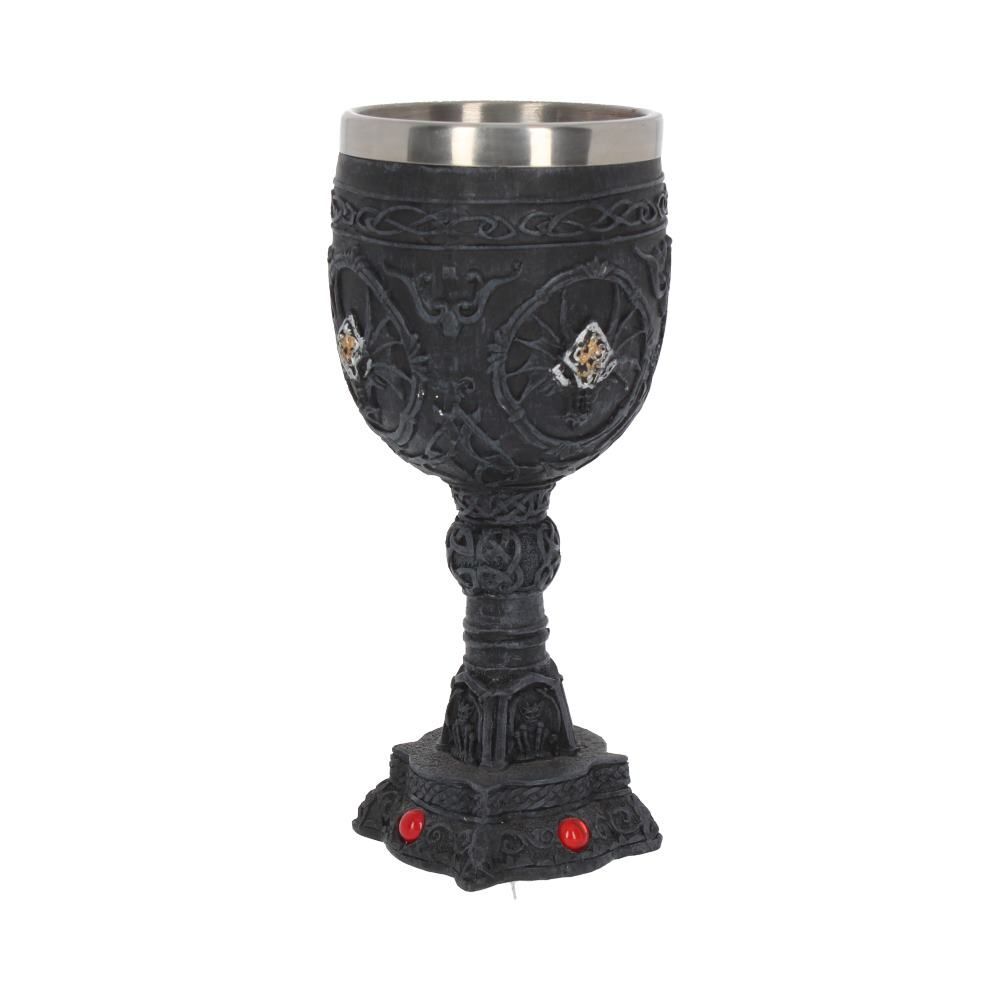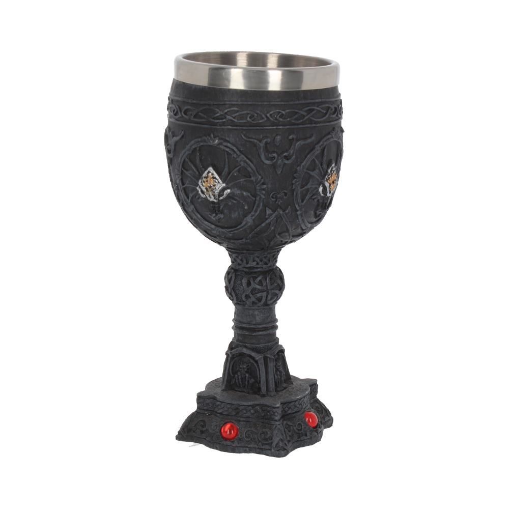 Этот кубок был создан талантливыми дизайнерами бренда Nemesis Now. Ножка этого кубка украшена различными узорами, опираясь на них, корпус кубка украшен изображениями пауков на черном фоне.