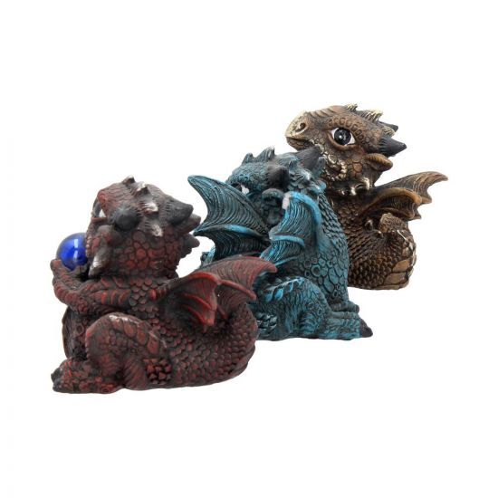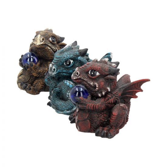 Отлитый из тончайшего полистоуна и с любовью расписанный вручную, эти маленькие дракончики станут прекрасным дополнением к дому любого любителя фэнтези. Каждый из них защищает небольшую сферу, эти драконы выпускаются в трех разных цветах и могут быть выставлены вместе или разделены на отдельные подарки. 8 см.