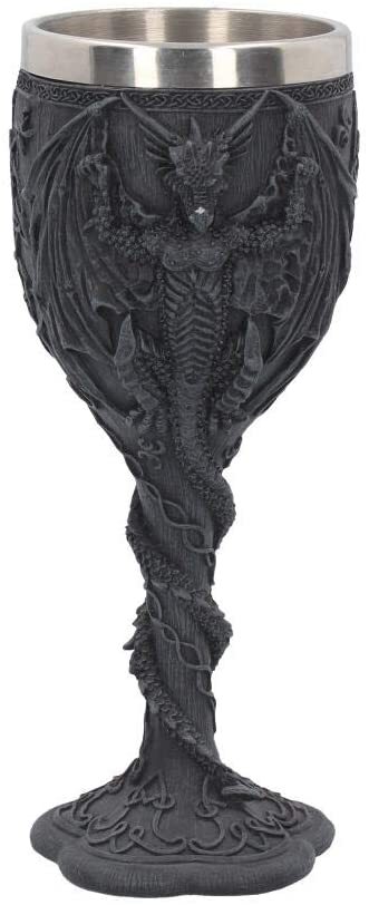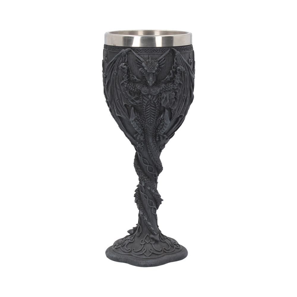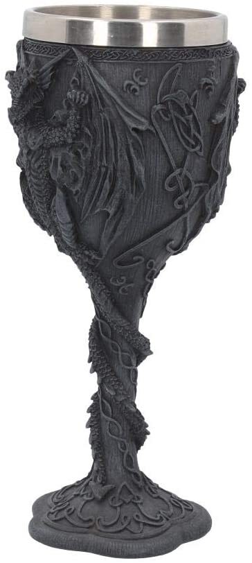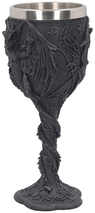 Таинственное темное создание прижалось к стороне чаши, его пронзительные глаза смотрят вперед. Позади дракона основание покрыто витиеватым кельтским вихревым узором. Двигаясь вниз по ножке, дракон обвивает ее хвостом. Отлитый из тончайшего полистоуна, а затем тщательно расписанный вручную, этот кубок идеально подходит для тех, кто увлекается мифическими зверями. Предназначен для использования по прямому назначению, а так же в декоративных целях. Мыть только вручную. Объем бокала - 200 мл. 19 см.