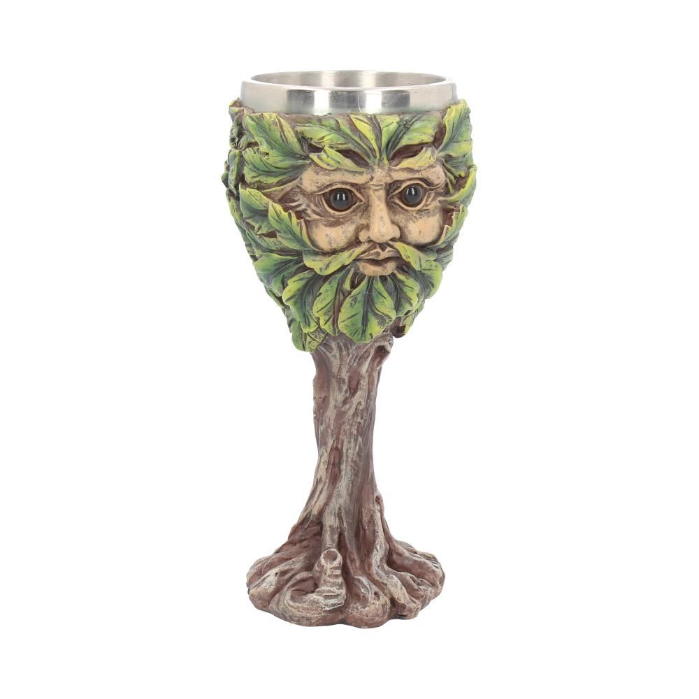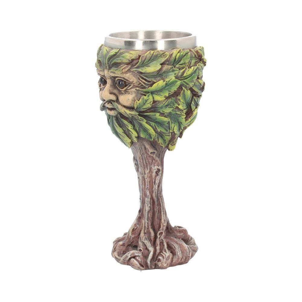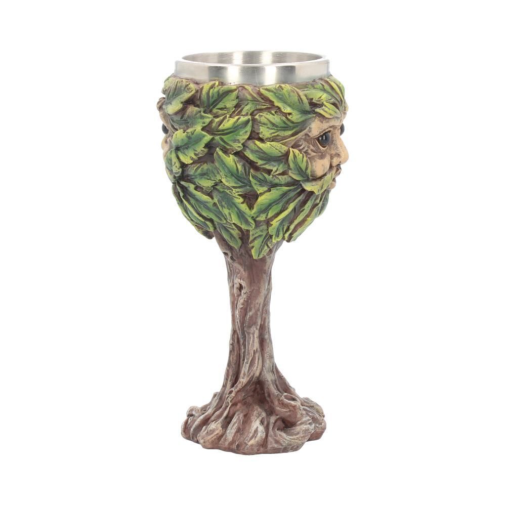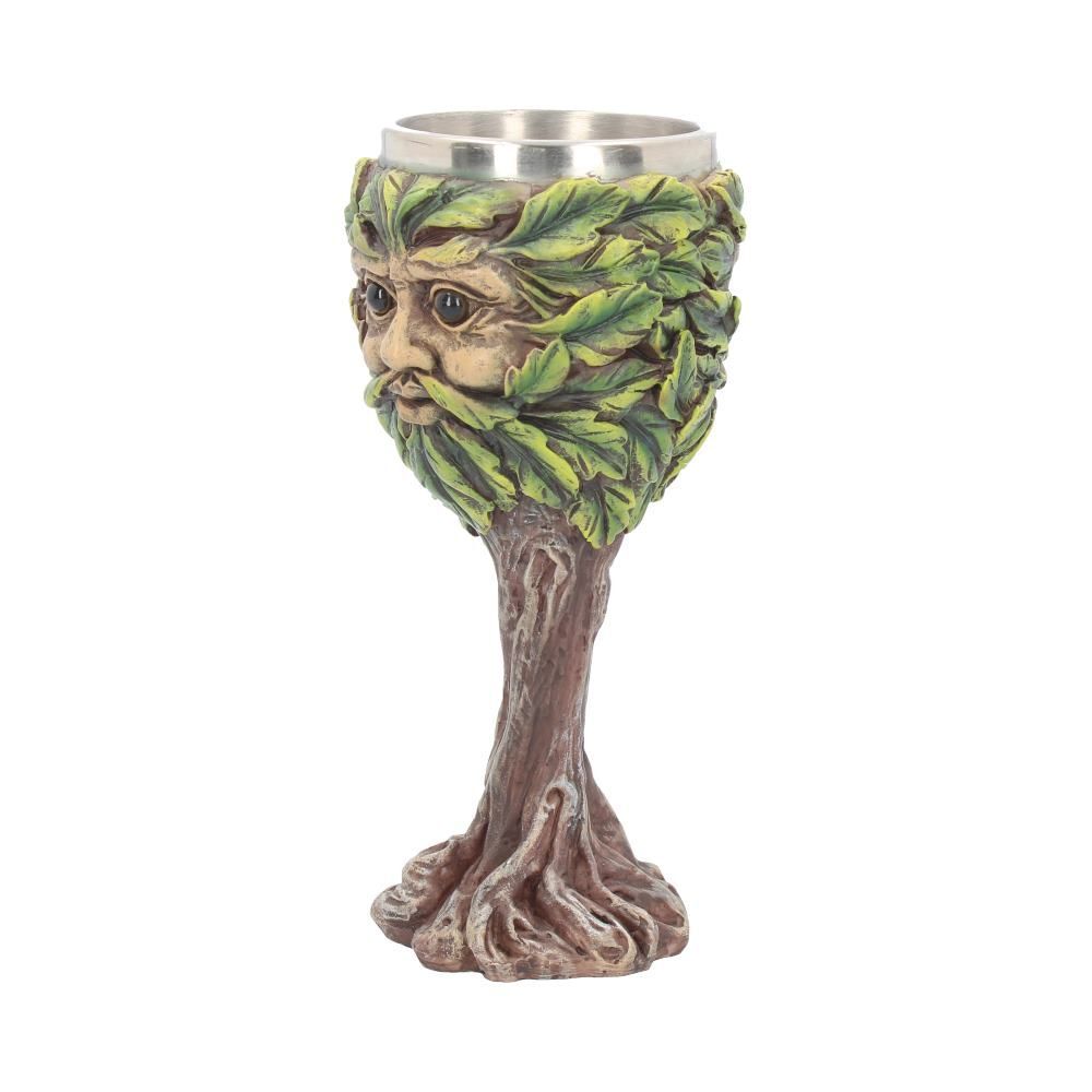 Этот кубок был создан талантливыми дизайнерами бренда Nemesis Now. Отлитый из тончайшего полистоуна, а затем тщательно расписанный вручную, этот кубок поставляется со съемной вставкой из нержавеющей стали для удобства очистки. Предназначен для использования по прямому назначению, а так же в декоративных целях. Мыть только вручную. Объем бокала - 200 мл. Ножка этого кубка имеет вид извилистого ствола дерева, крепкого и коричневого. Она поднимается к чаше, украшенной лицом зеленого человека, духа леса, духа природы с большими проникновенными глазами, смотрящими на вас из-под бороды густых зеленых дубовых листьев.