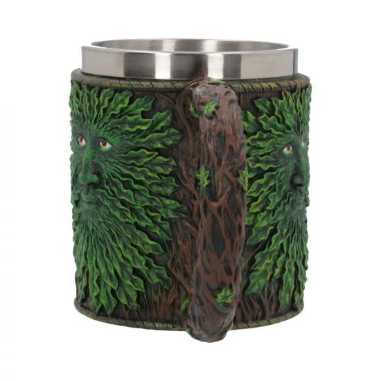 Доступный как часть альтернативной коллекции подарков Nemesis Now, этот Green Tankard идеально подходит для всех, кто желает поклоняться древним духам леса. Основа сделана из лозы и коры, обвивая чашу и ручку, в то время как лицо Зеленого Человека смотрит с каждой стороны. Отлитый из высококачественной смолы перед тщательной ручной росписью, этот Tankard поставляется со съемной вставкой из нержавеющей стали для удобства очистки.