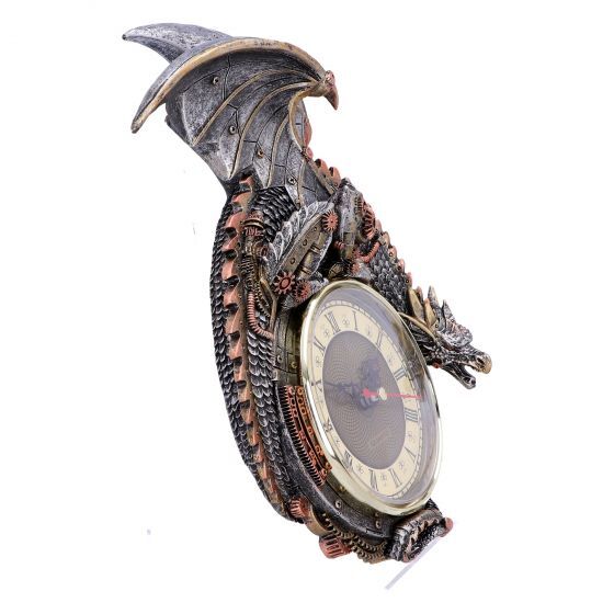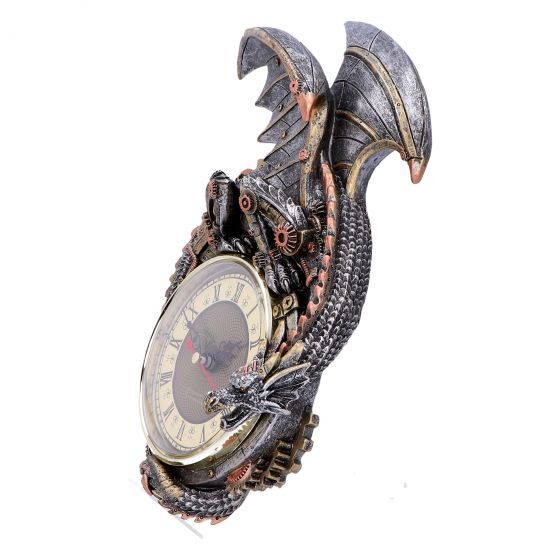 Возьмите под контроль свое время с этими фантастическими настенными часами! Эти часы ревниво охраняются часовым драконом, с золотыми зубцами и латунными заклепками, которые сидят на их металлических весах.