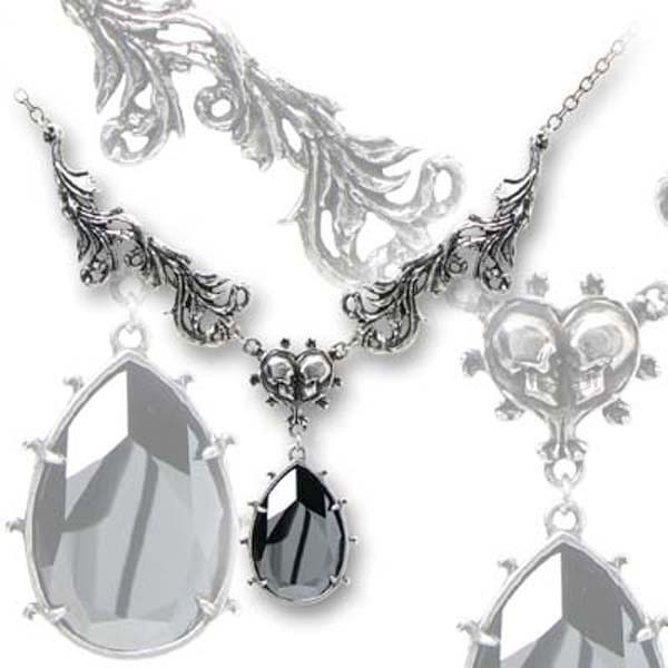 Камео, предсказывающее судьбу бесконечной любви. Камень стального цвета, в нем все отражается, как в зеркале. Его размеры: 3 см * 4 см. Подвес с этим камнем висит на цепи длиной 1 см. Размеры центрального 4 (сердце с двумя черепами, смотрящими друг на друга): 2,5 см * 2,5 см. Длина крайних витых украшений = 9 см каждое. На цепи (26 см, длина регулируется, можно увеличить ее еще на 1-4 см).В подарочной упаковке: на черной бархатной подложке в черном полупрозрачном мешочке. Изделие из английского пьютера украшено кристаллами Сваровски, изготовлено в Великобритании. Идеи и дизайн изделия разработаны художниками бренда The Alchemy Gothic и защищены авторским правом.