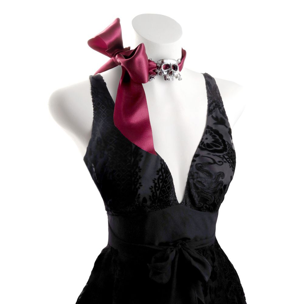 Смелая и рефлексивная аллегория на вечную сущность и достойное принятие конечной судьбы: на бордовой атласной ленте для чокера, для завязывания вручную.