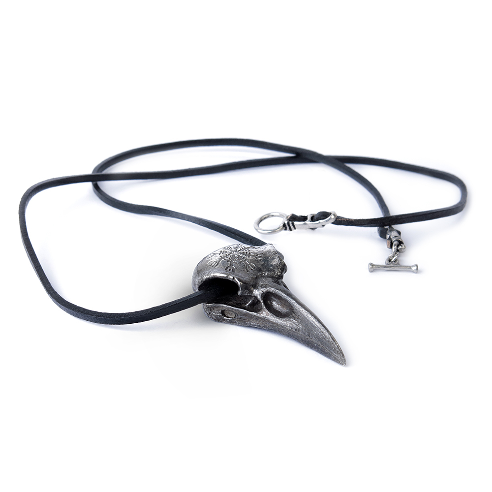 Подвеска в форме черепа ворона Одина, украшена символом Шлем ужаса (Эгисхьяльм). На черепе этого ворона выгравирован символ Исландии - "Эгисхьяльм", или "Шлем ужаса"