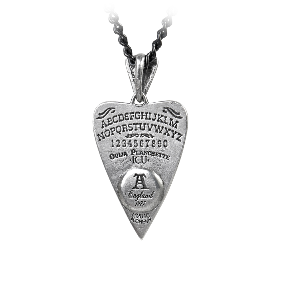 Подвеска планшетка-указатель - составляющая часть доски Уиджа для спиритических сеансов. Технология сеанса связи с потусторонним миром 19 века; устройство для спиритизма для общения с мертвыми через "говорящую доску", а также для открытия тайн с другой стороны... Уиджа! Кулон из английского пьютера в форме планшета для спиритических сеансов, или указатель "уиджа", выгравированный мистическими символами, плюс алфавит на обороте, и реалистичный акриловый глаз, установленный в углубление. Подвеска на черной 21"/48 см цепи. Вес и размеры (приблизительно): В: 64 мм (2,52 дюйма) W: 32 мм (1,26 дюйма) Д: 10 мм (0,39 дюйма) Вес: 36 г (1,27 унции)