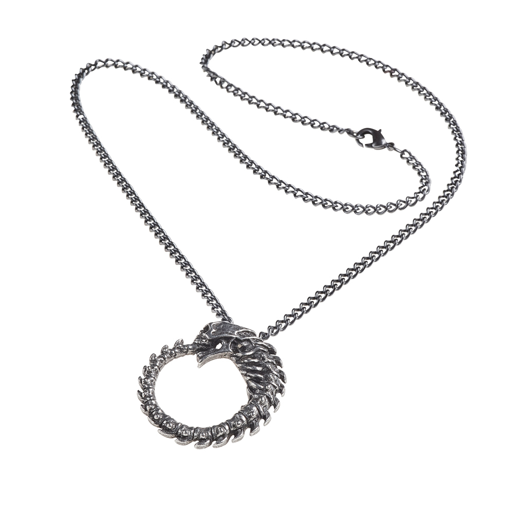 Подвеска Скелет Уроборос свернувшийся в форму кольца. Изделие изготовлено в Великобритании. Идеи и дизайн изделия разработаны художниками бренда The Alchemy Gothic и защищены авторским правом. Вес и размеры (приблизительно): H: 37 мм (1,46 дюйма) W: 36 мм (1,42 дюйма) D: 10 мм (0,39 дюйма) Вес: 23 г (0,81 унции)