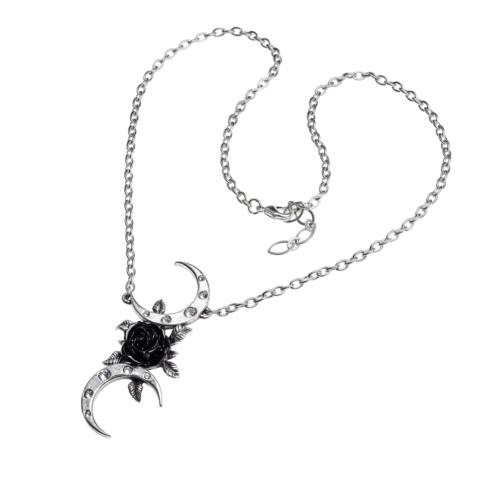 Альтернативная аллегория для Триединой Богини Луны, представленная с романтической точки зрения, с черной розой и полумесяцем, украшена кристаллами Swarovski, чтобы отпраздновать мистику Викки.