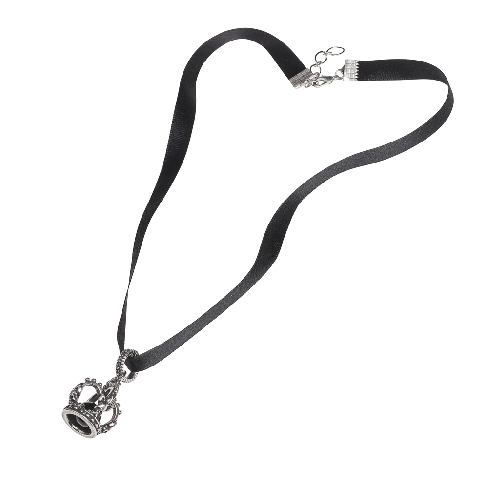 Подвеска стилизованная 3D корона с черепами и цветами флер де лис, внутри установлен камень, подвеска из английского пьютера на ленте.
