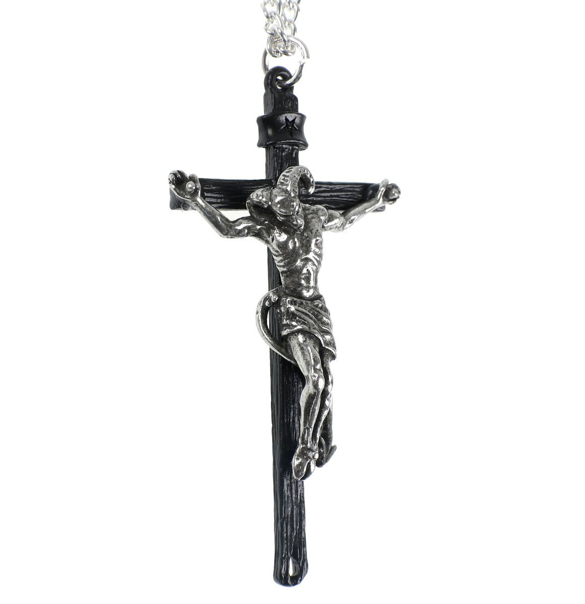 Фауст, заключивший сделку с дьяволом, чтобы обменять свою душу на бесконечные земные удовольствия и знания, в конечном итоге закончил свои земные испытания в Чистилище. Черный крест из пьютера на котором возвышается распятый демон. Крепление и упаковка: подвеска на цепочке с застежкой. Сплав не содержит никеля. Упакован в фирменный пакетик Alchemy, включая гарантию Alchemy и инструкции по уходу. Материалы и происхождение: разработан и изготовлен вручную в Англии из тонкого английского пьютера. (Пожалуйста, обратите внимание, что размеры украшений на шею указаны без учета креплений) Длина цепи 54 см.
