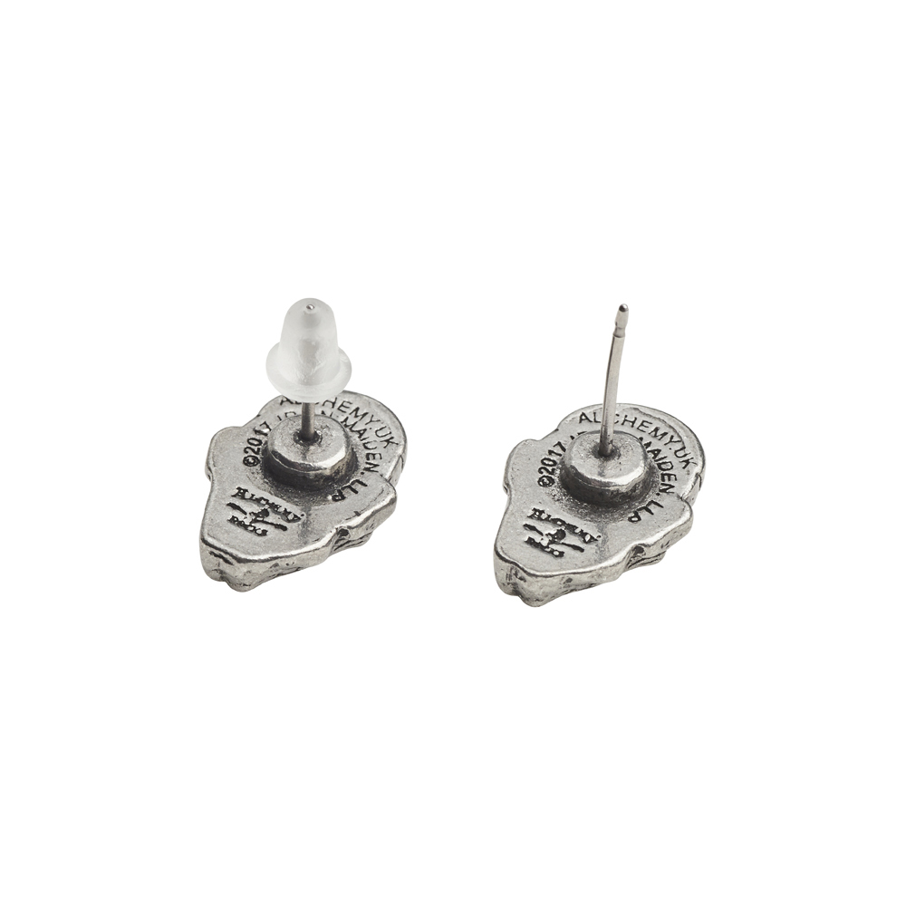 Пара 3D-скульптурных сережек на основе головы Эдди; серьги из английского пьютера.