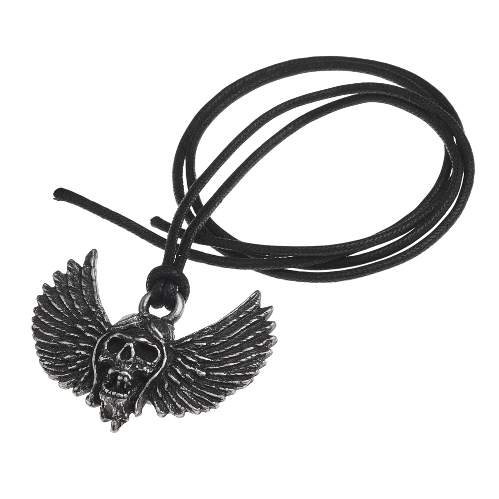 Подвеска череп с крыльями из английского пьютера на вощеном шнурке.