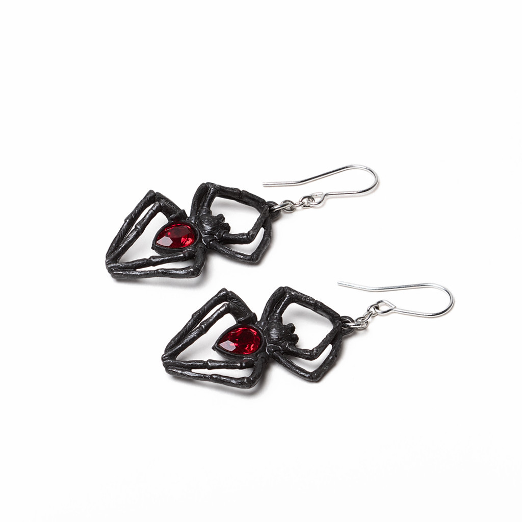 ЧЕРНАЯ ВДОВА. Смертоносная, хищная пара затихла, в тревоге готовая вонзить свои клыки в любую удобную и желанную добычу. Притягивающие взгляд серьги, которые придадут готической драмы любому наряду! Пара серег-пауков из черненого пьютера длиной 40 мм, их тела украшены красными австрийскими кристаллами; на дужках из хирургической стали. Вес и размеры приблизительно): H: 37 мм W: 22 мм D: 9 мм Вес: 15 г. Упаковано в фирменный пакет Alchemy, включая гарантию Alchemy и инструкции по уходу. Разработано и изготовлено вручную в Англии из тонкого английского пьютера.